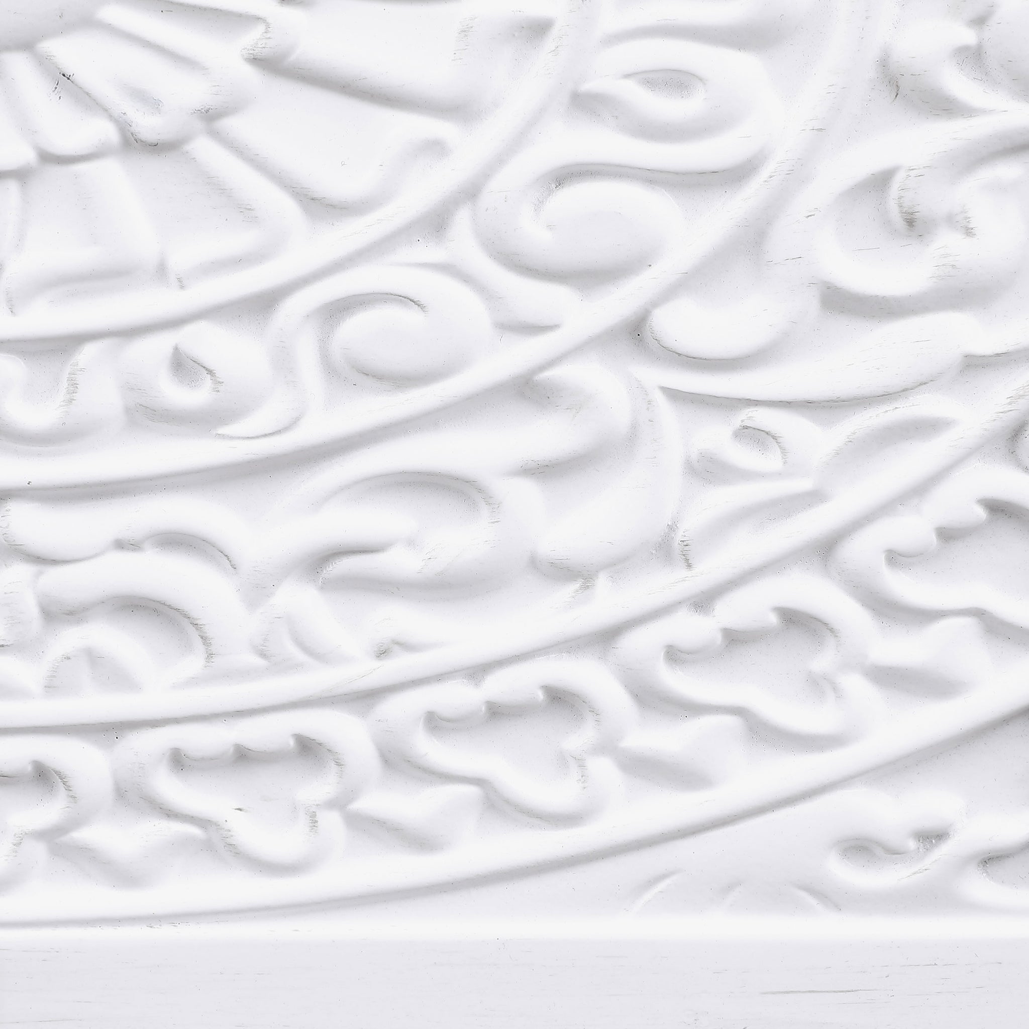Put the last touches on a stylish space with the added storage and impeccable style of a modern accent cabinet. Featuring two decorative magnetic push-to-open doors, it's the perfect addition in any space, offering ample interior space with an adjustable shelf. The top creates space for decor or to highlight beautiful artwork hung above. The cabinet boasts a crisp white finish, bringing light, refined character to a pair of floral medallion doors. Curvy legs feature silver-toned caps, adding a hint of contrast and dimensionality in any room.