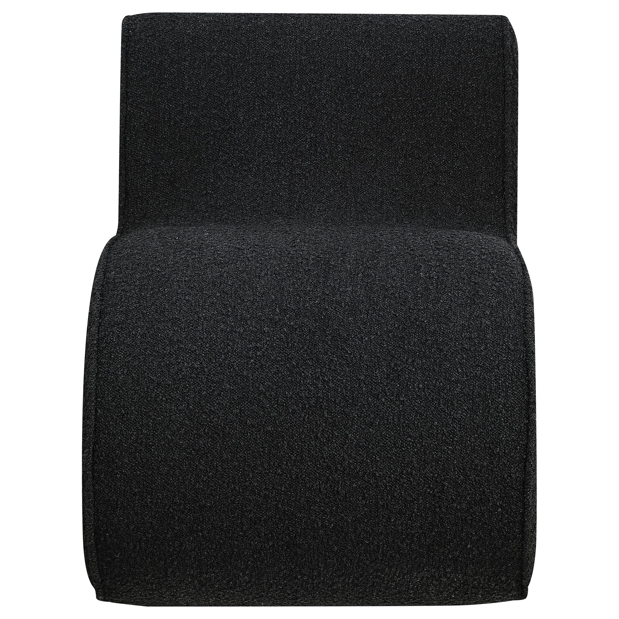 Step into the vanguard of home décor with this modern accent chair, its bouclé fabric not just on-trend but a textural revelation. The chair's unique shape is a conversation starter, sculpted to cradle and command attention in any setting. It's an embodiment of form meeting function, where the tactile allure of the fabric contrasts with the fluidity of its silhouette. This piece is not merely a chair; it's a testament to contemporary design, inviting you to immerse yourself in its stylish embrace. Let the chair's sinuous form and the fabric's cozy charm transport you to a world of chic comfort.