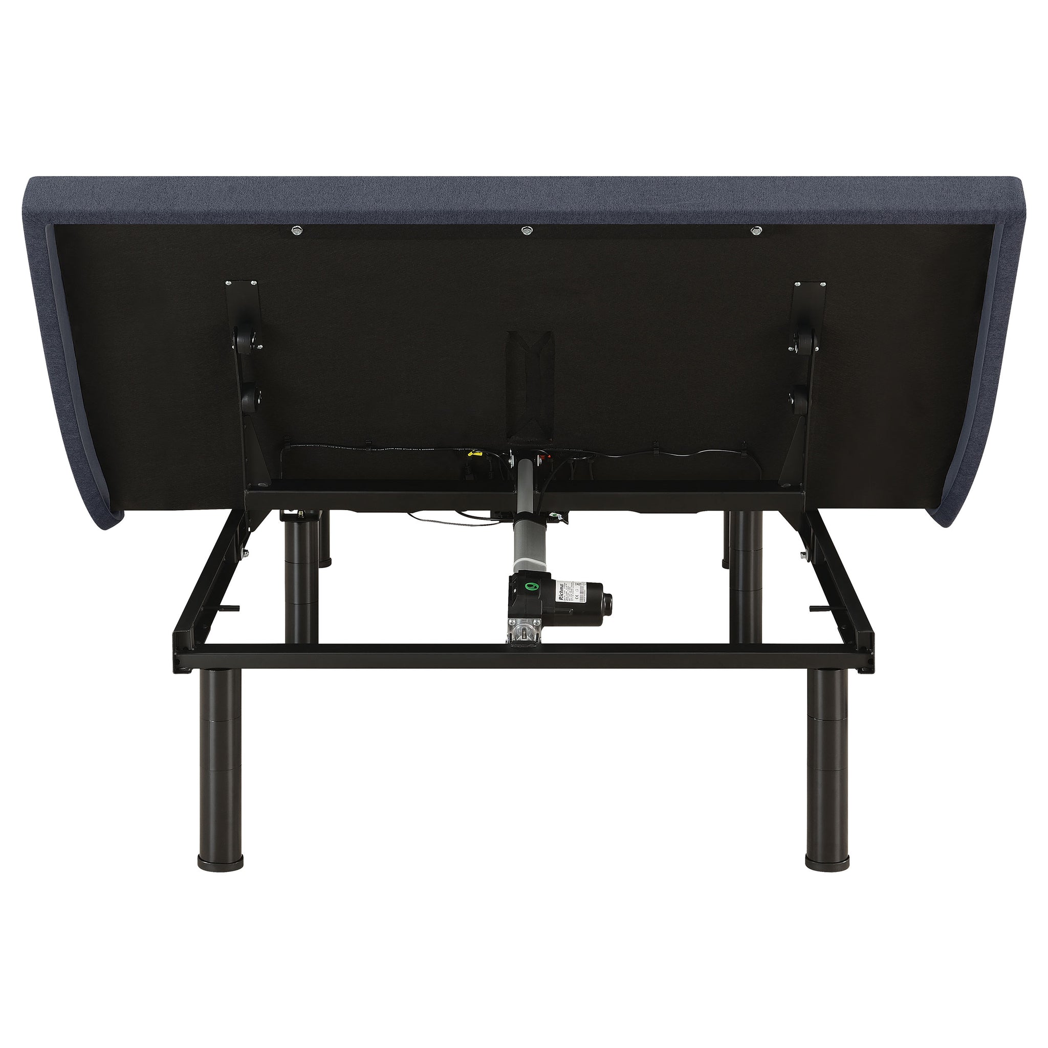 Experience personalized comfort with this adjustable bed base, designed to transform your bedroom into a space of relaxation and support. Upholstered in a modern two-tone fabric with a sturdy black metal frame, it blends seamlessly with any decor. A wireless remote with backlit soft-touch controls makes it easy to adjust the head and foot incline, with preset positions including Zero Gravity, Anti-Snore, Flat, and Memory. Tool-free assembly takes only minutes, while versatile 3-in-1 legs provide multiple height options and ample under-bed storage._x005F_x000D_ Key Features: • Queen adjustable bed base with ergonomic presets for customized sleep comfort • Wireless remote with backlit soft-touch controls and integrated flashlight • Head and foot incline with Zero Gravity, Anti-Snore, Flat, and Memory settings • 3-in-1 adjustable legs with height options of three, six, nine, or twelve inches • Quick five-minute tool-free assembly with intuitive design and easy setup • Emergency power-down plus ten-year mechanism and two-year full warranty