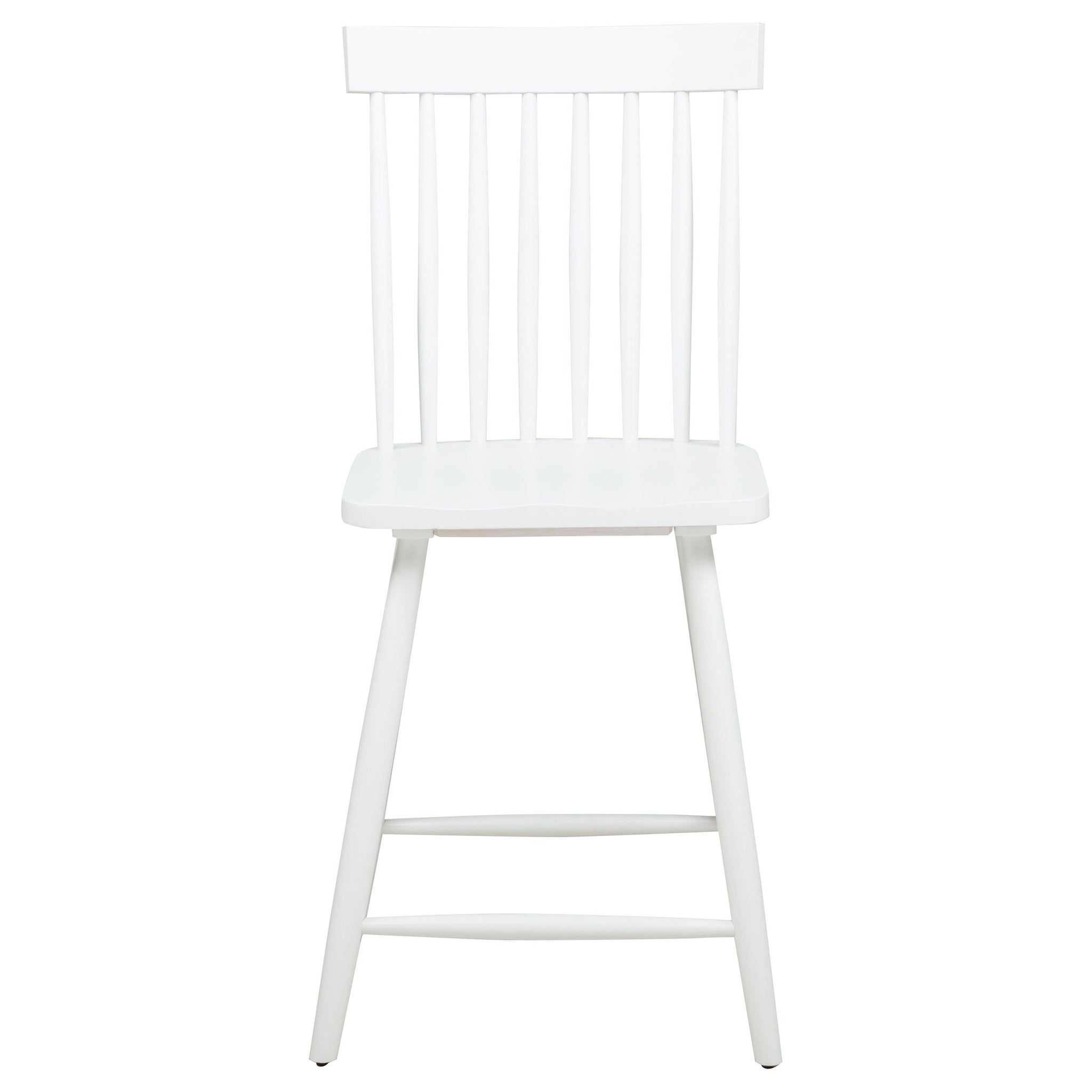 Elevated and inviting, this counter height dining set blends mid-century ease with farmhouse charm. A round table with tapered legs anchors the space, while Windsor-style chairs feature tall spindle backs and gently contoured seats for enduring comfort. Crafted from solid rubberwood with ash veneer over engineered wood, each piece highlights a soft natural grain. Perfect for kitchen nooks, breakfast counters, or casual dining spaces. Key Features: • Counter height dining set includes round table and chairs in a warm, light ash wood finish • Tabletop rests on tapered legs that offer mid-century styling with a compact footprint • Light ash Windsor-style chairs feature tall spindles and curved seats for relaxed elevated dining • Angled legs and stretchers on chairs provide support, strength, and balanced proportion • Crafted from solid rubberwood, ash veneer, and engineered wood for lasting performance • Light ash grain finish complements bar settings, kitchen islands, or elevated nooks