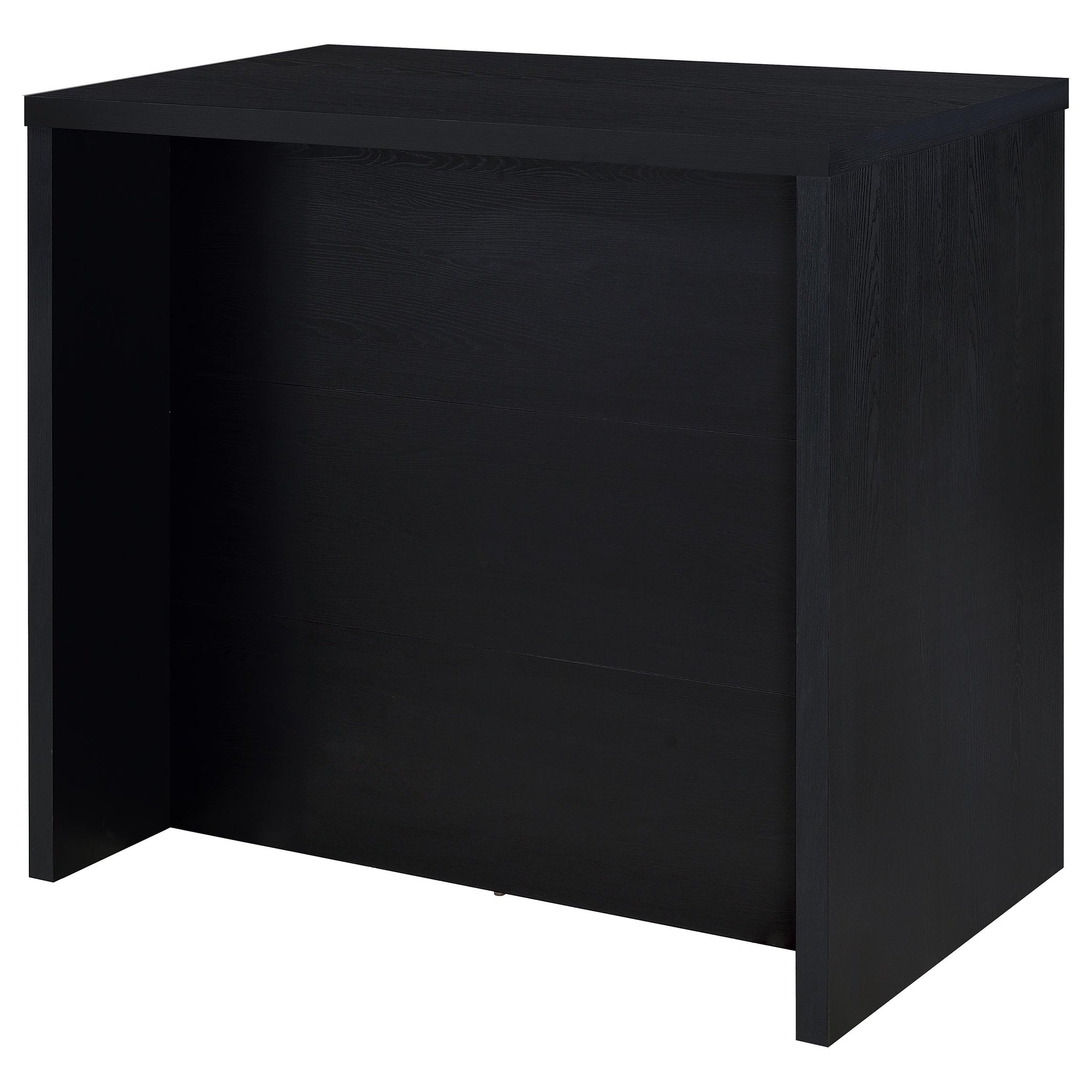 This home bar combines modern style with functionality, crafted from engineered wood and laminate veneer for a sleek, durable design. Perfect for entertaining, it features a wine bottle grid that holds up to 12 bottles, multiple open shelves for organization, and integrated metal stemware racks for hanging glasses securely. With its versatile storage solutions and sturdy construction, this bar is an ideal addition to any home, keeping your entertaining essentials stylishly organized and accessible. Key Features: • Home bar in a sleek black finish for a bold, modern look • Crafted from engineered wood and laminate veneer for durability • Wine bottle grid accommodates up to 12 bottles for easy organization • Integrated metal stemware racks provide convenient glass storage • Multiple open shelves offer versatile storage for barware and accessories • Perfect for creating a cozy, functional bar space in your home