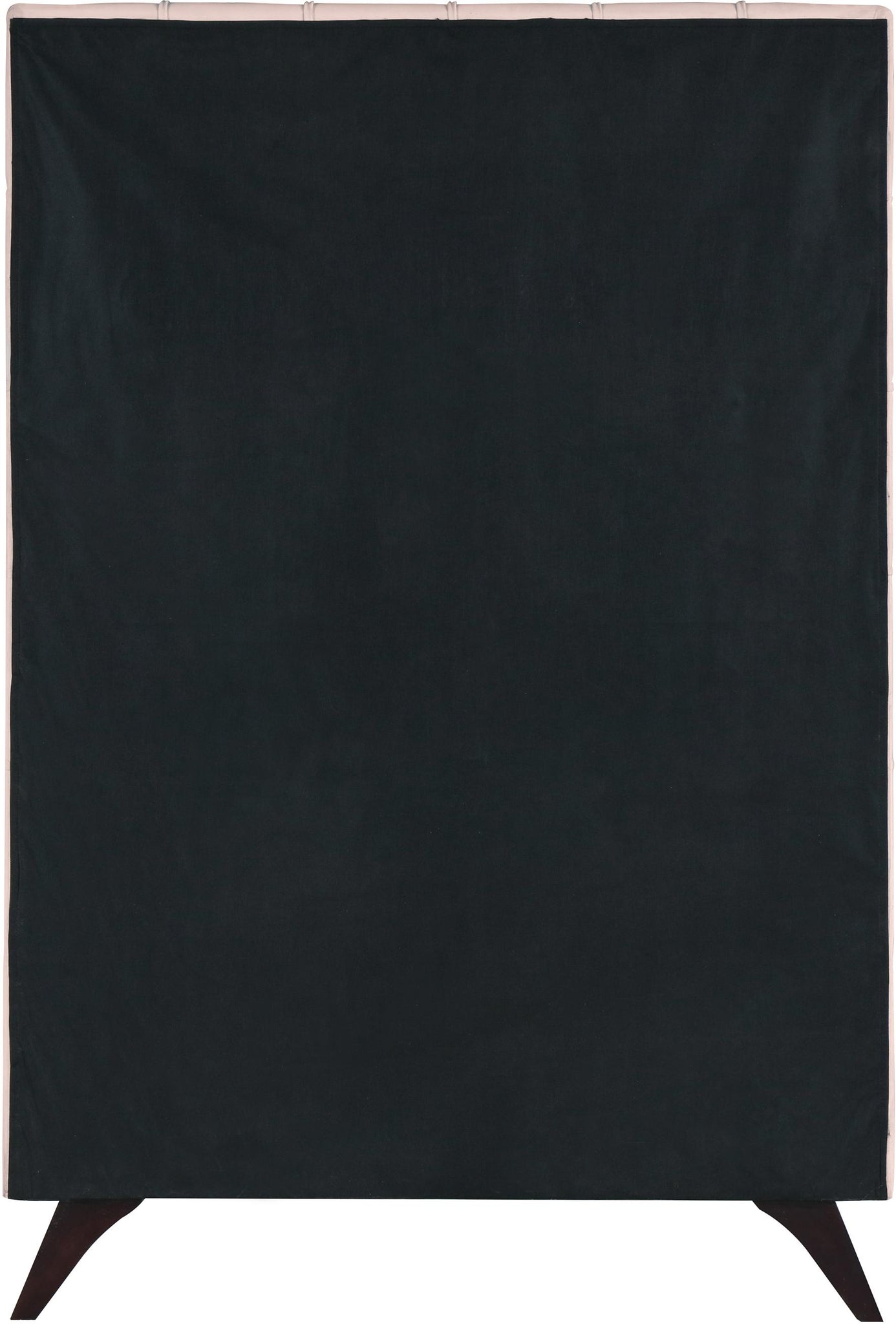 Crawl into this cozy Elly pink velvet twin size bed for a restful night's sleep. The deep button tufting on its tall headboard provides a soft, pillowy surface to lean against for nighttime reading or watching TV. Supported by angled wood legs with an espresso finish, the side rails and footboard are also comfortably padded and upholstered. Contemporary styling ensures that this bed will integrate nicely into any existing d?�cor.