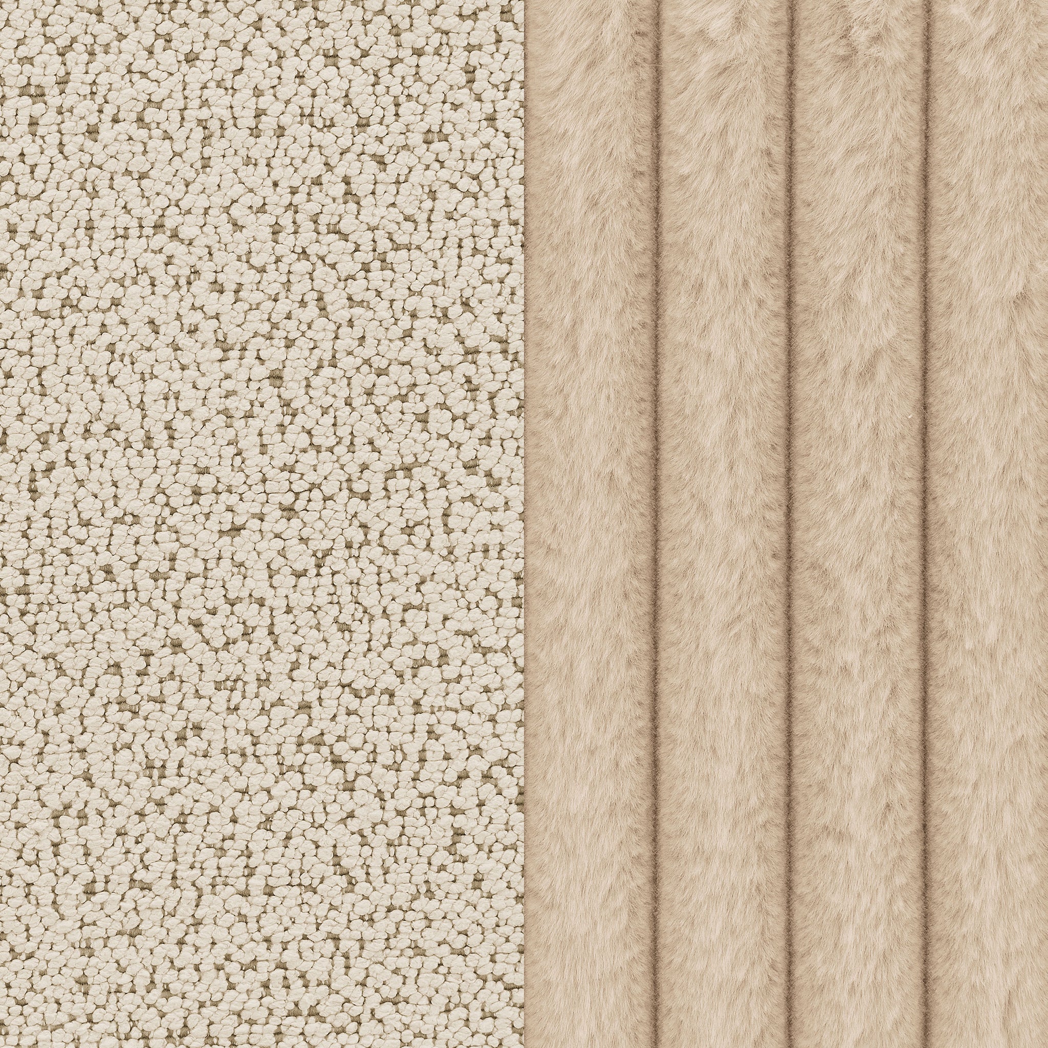 Cuddle up in stylish comfort with this modern extra-long sofa, a perfect interior focal point with its fun bubble-like design. The sofa shows off boucle upholstery in a sand pebble hue, adding an inviting warmth to your décor. It's incredibly comfortable and spacious, featuring wrap-around extra plush channeling with tufted accents on a waterfall bench seat, ideal for large living rooms and lounging or entertaining. Wide armrests are piped to create texture and depth, while offering a sloped design that adds comfort. The sofa is further enhanced with wide corduroy accent pillows filled with premium down-like fill for lasting comfort, and vertical channel tufting decorates the back and arms, adding visual interest.