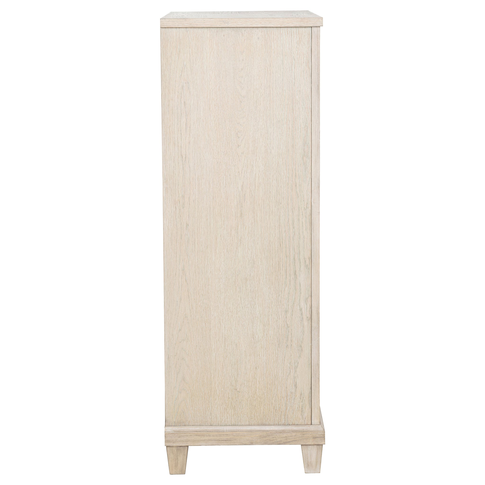 Rooted in timeless grace, this five-drawer chest evokes the quiet elegance of a well-appointed retreat. Gently stepped trim and soft ring-pull hardware lend a sense of heritage, while the washed oak finish whispers of sun worn wood and airy calm. With generous storage hidden behind its refined facade, this piece offers both beauty and intention—crafted to hold life’s essentials while elevating the rhythm of everyday living. Key Features: • Five-drawer chest with stepped trim and clean lines for classic bedroom appeal • Washed oak finish reveals organic grain with a light, airy character • Spacious drawers offer practical storage for clothing and linens • Ring-pull hardware adds traditional charm with a subtle metallic accent • Crafted from poplar, engineered wood, and oak veneer for lasting strength • Tip-over restraint included for added safety and everyday stability
