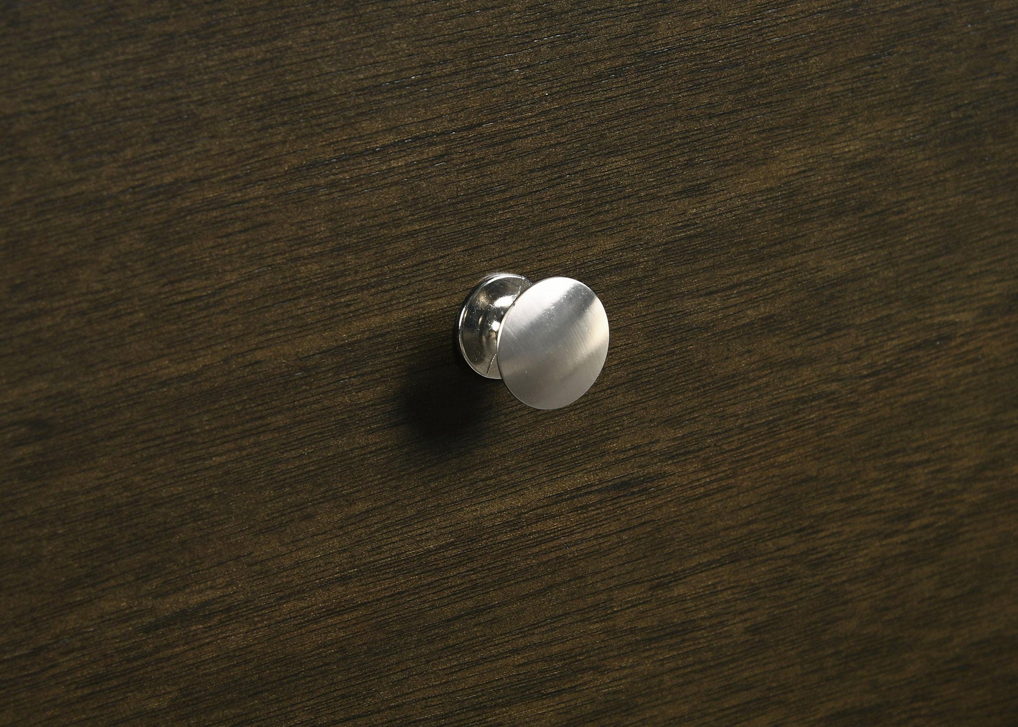 This four-drawer chest offers a perfect blend of function and style with its deep drawers and sleek design. The dark cocoa finish highlights the chest’s vertical details, bringing warmth and sophistication to your space. Brushed nickel hardware provides a contemporary contrast, enhancing the modern appeal of the piece. The drawers glide smoothly on center metal glides, making it easy to access your belongings. Crafted from high-quality materials, this chest is designed to offer long-lasting durability and style. Key Features: • Four-drawer chest with ample storage space • Dark cocoa finish adds warmth and sophistication • Brushed nickel hardware adds a sleek, modern contrast • Center metal glides ensure smooth drawer operation • Crafted from rubberwood, engineered wood, and okume veneer for durability and style