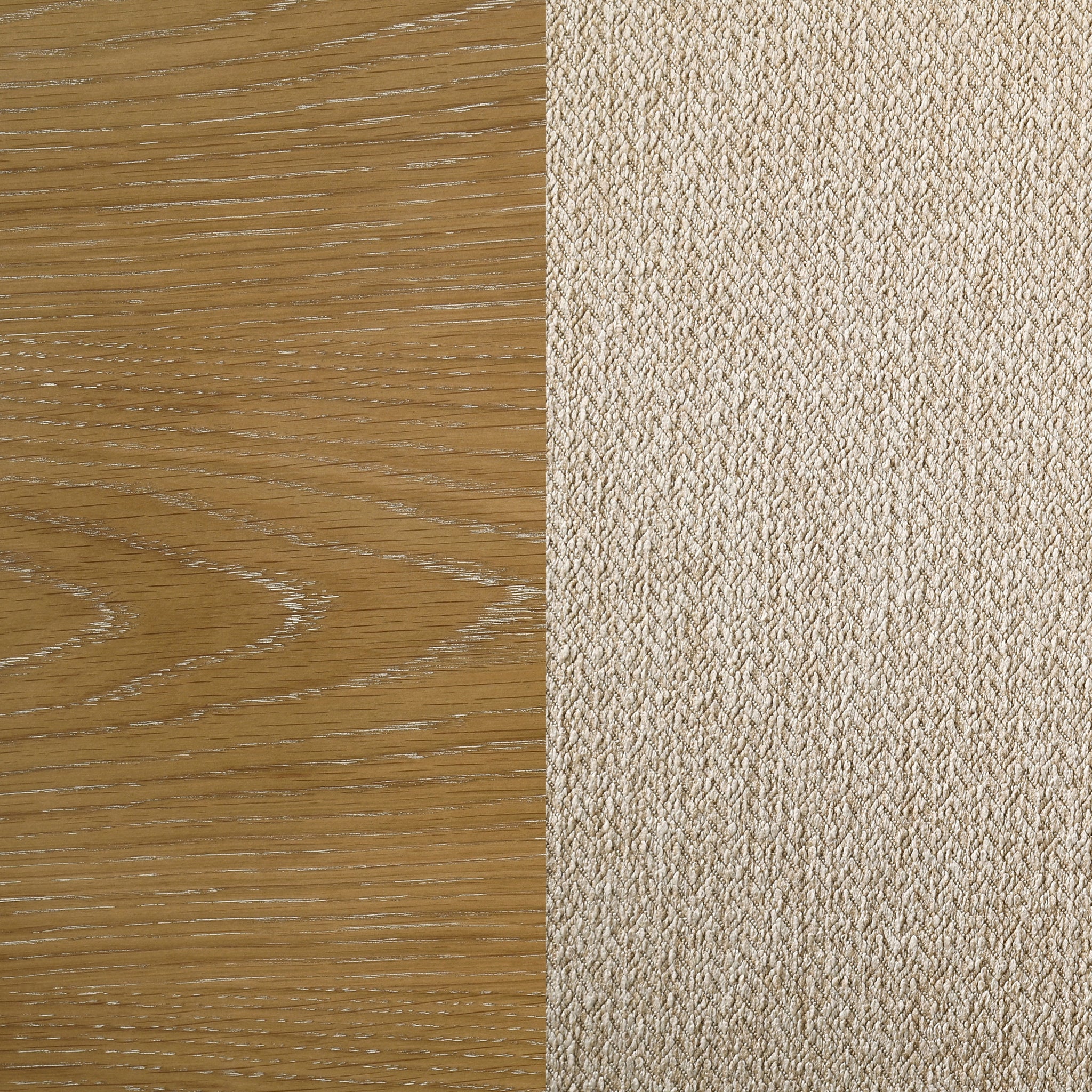 Infuse your kitchen or dining room with the inviting warmth of a modern farmhouse dining set that includes a round table and four side chairs. The set is designed for casual enjoyment and vintage style, complete with a starburst wedge veneer pattern on its charming tabletop. The base of the table adds thick supports, including flared legs and crossing stretchers enhanced with joinery details. The set is ideal for a compact space, seating four comfortably with its 54-inch tabletop diameter. Its brown oak wood finish extends to four side chairs, each with a ladderback and padded seat covered in latte finish upholstery for a versatile look. Key Features: • A five-piece modern farmhouse dining set creates a perfect gathering place for family meals • Starburst wedge tabletop veneer pattern is engaging and stylish in farmhouse or coastal decor • Features oak veneer in a brown wood finish with joinery details that add character • Strong lines define the structure of the table, which boasts flared legs and crossing stretchers • Chairs are a classic ladderback with a seat in neutral beige upholstery over foam cushioning