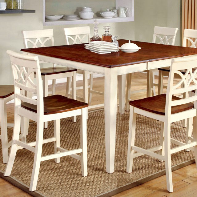 Sleek splayed details of this Table are perfectly designed with radiant country charm and accented with intricate chair fine points. Available in two colors and sizes to best suit any kitchen style needs.