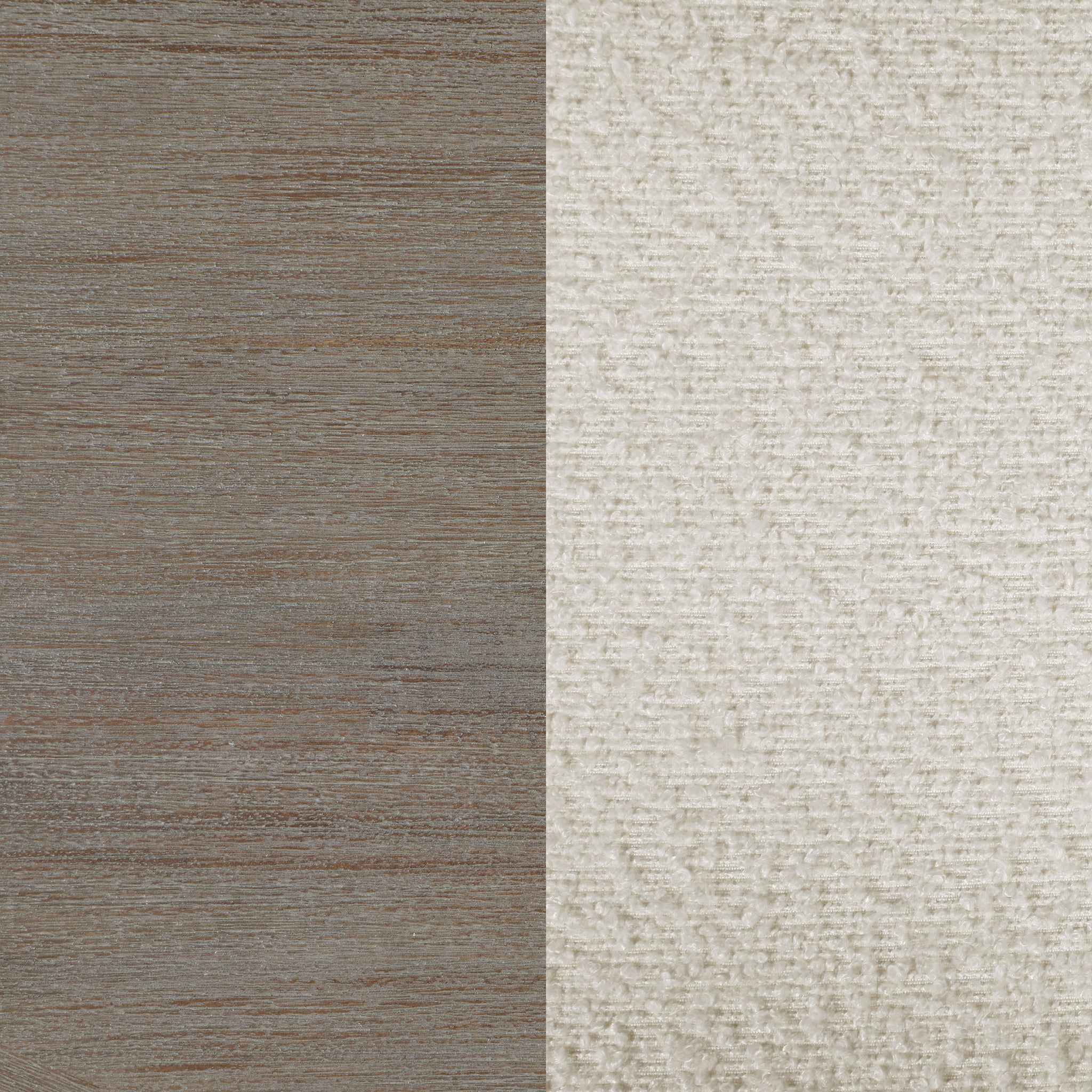 Upgrade your dining table with a set of two modern farmhouse side chairs. Perfect for a casual kitchen table, they feature coastal character with a grey wood finish that offers subtle wood grain patterning. Upholstery is a creamy white with wonderful texture that adds depth and comfort. The inviting chair design includes a gently angled back with a modified ladder back that pairs a wide top slat with a slimmer lower slat to create a compelling asymmetric silhouette. This pair is great for kitchens and dining rooms, alike.