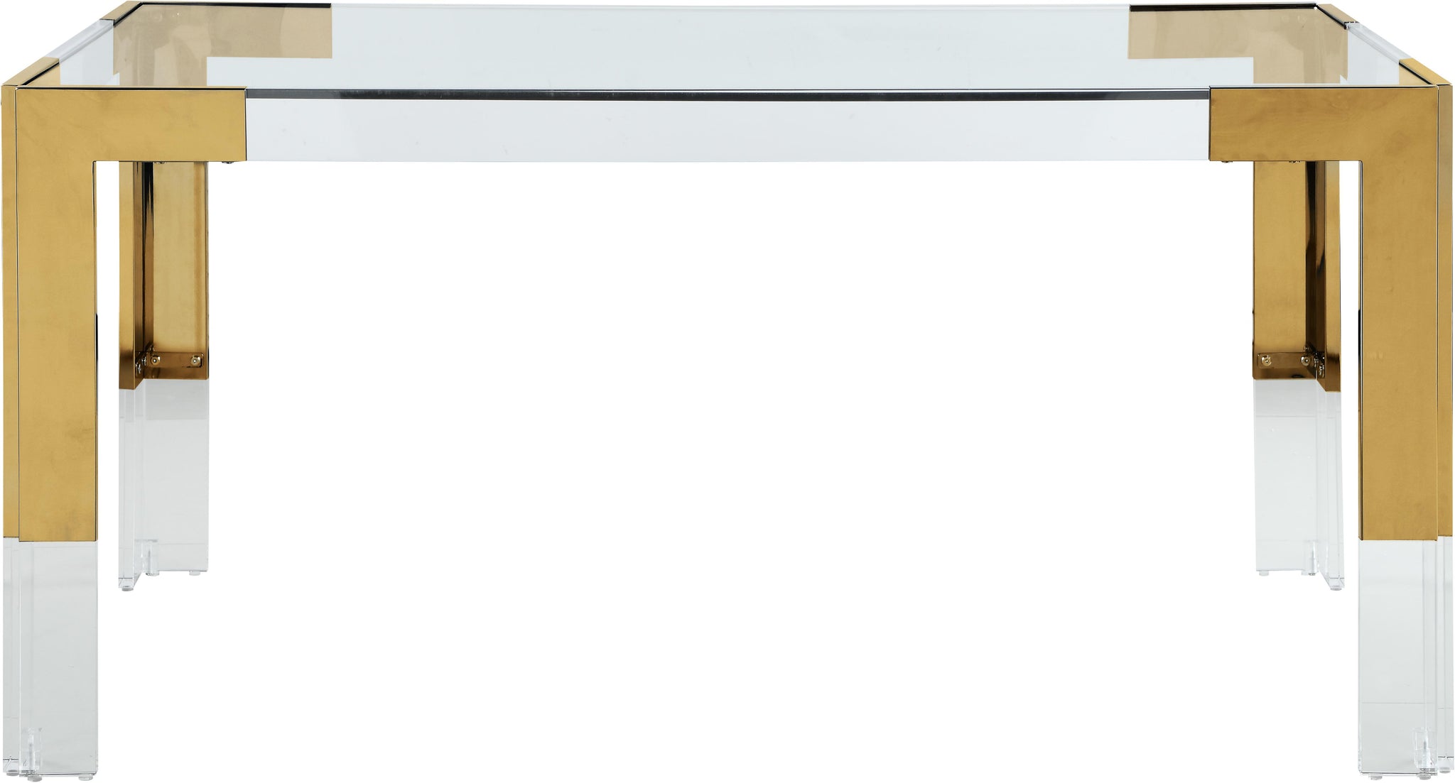 Enjoy intimate meals with those you love when you gather around this Casper dining table. This beautifully eye-catching table features a rich gold frame topped with a clear glass top for a rich, luxe look. Acrylic legs crown the stainless steel frame, adding to its contemporary feel. Pair it with your favorite modern chairs for an instant dining room or breakfast nook facelift.
