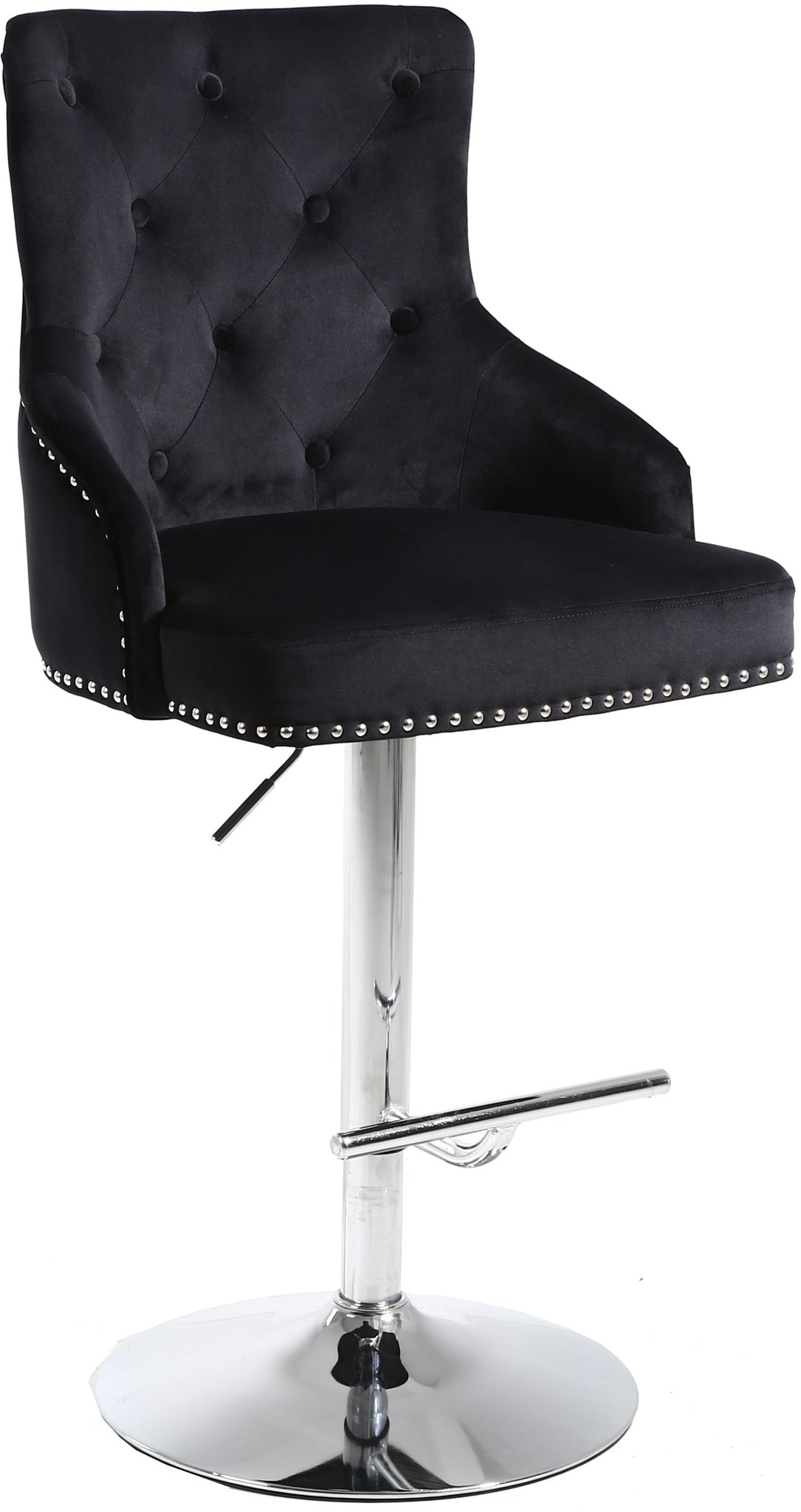 Make this Claude Black Velvet Adjustable Stool everyone's new favorite seat. The high-back design supports guests in comfort, while rich velvet upholstery in a crisp black color gives the stool a svelte, modern look. Chrome nailhead trim adds another level of luxury, and the tufted design enables the cushioned back to keep its loft for maximum comfort. Add it to the bar or the kitchen counter to create a modish vibe in your room.