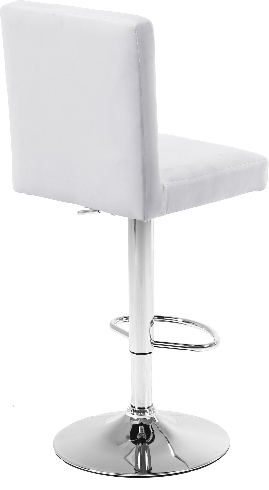 Relax in total comfort while sipping cocktails from this Joel White Velvet Adjustable Stool. Rich velvet upholstery gives this stool a luxe look that oozes glamour and sophistication with every turn. The chrome-finished base has a definitive modern edge, and a foot rail on the bottom gives you a spot to rest your feet while you unwind. Easily raise or lower the seat with just the touch of a lever to ensure custom comfort at the home bar or your kitchen counter.