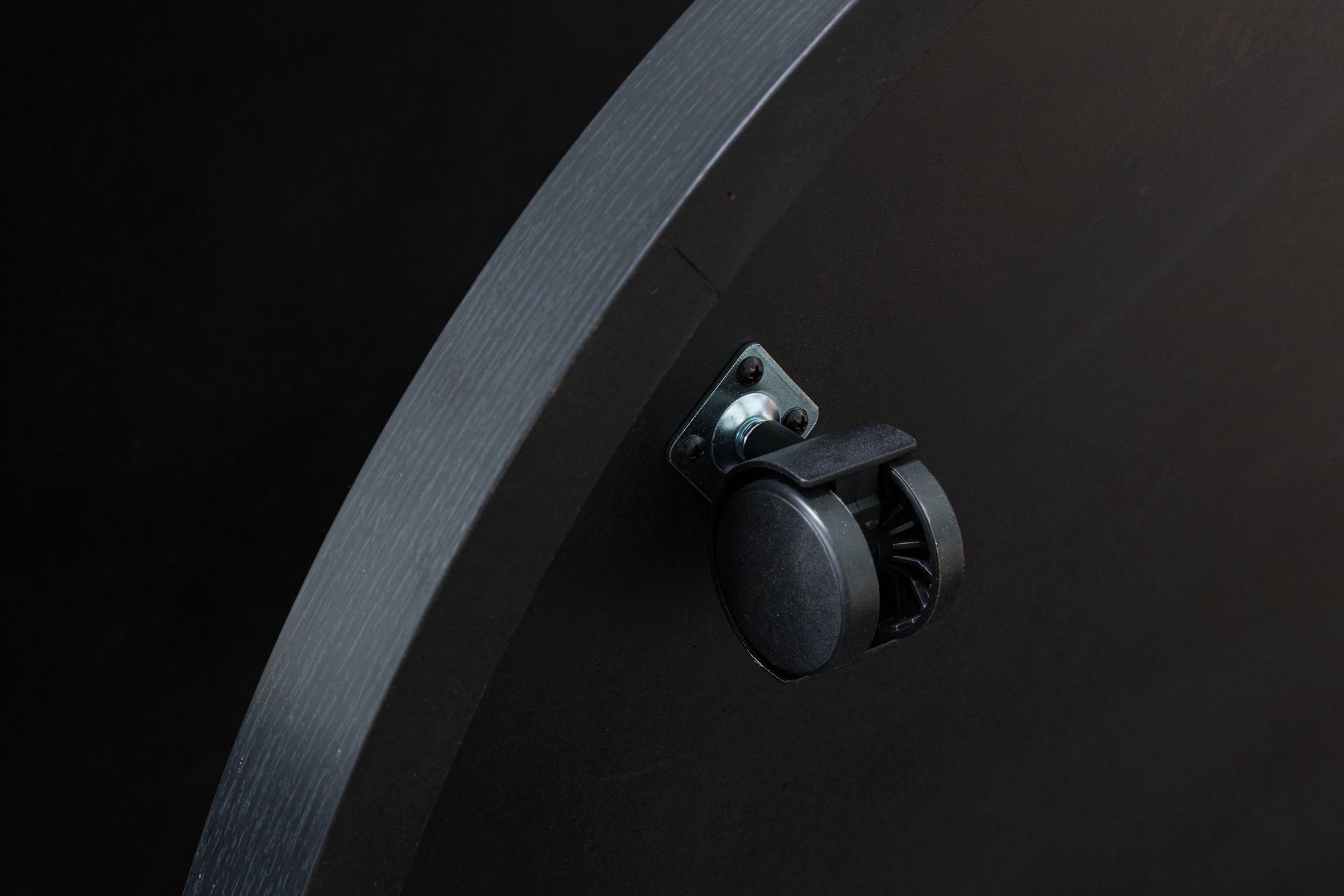 Reflect your cool, contemporary eye for design with this table set. Pairing a gleaming goldtone finish and black wood grain pattern, it crafts a luxe look for your living room. The lower shelves are well-suited for displaying your favorite decor, while casters on the coffee table offer added flexibility.