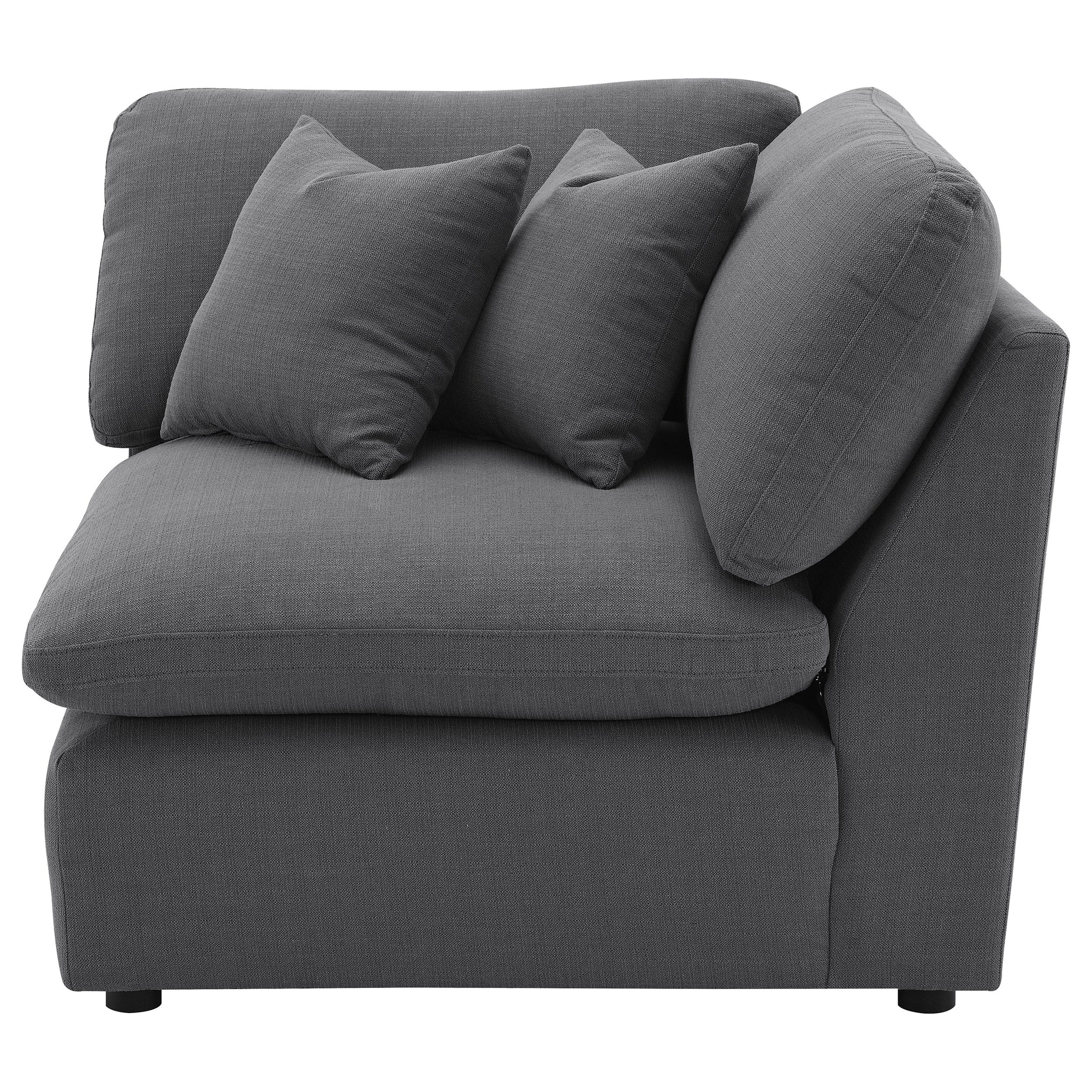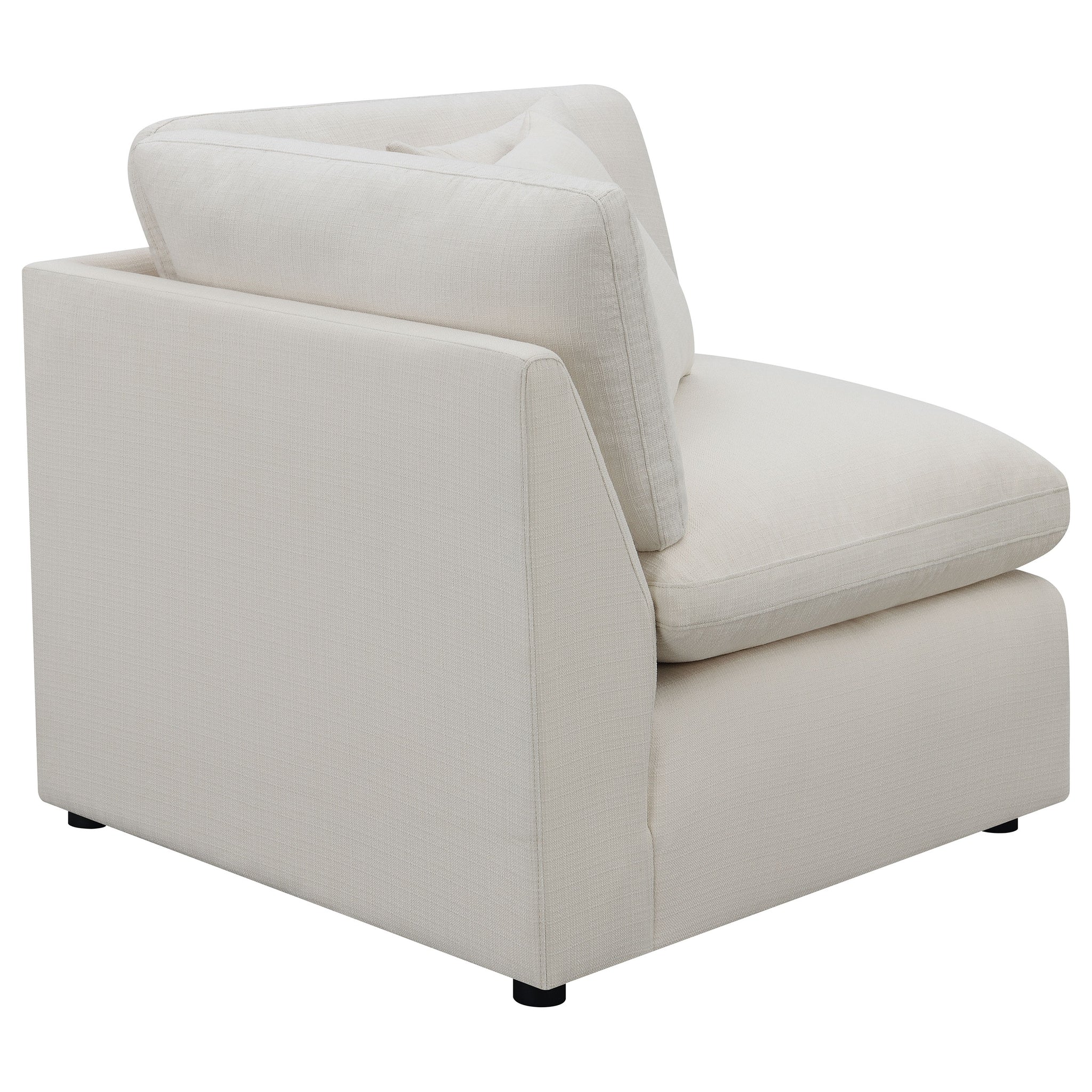Relax on the cushioned comfort of this well-designed corner for the den or living room. Upholstered in linen-like, it's crafted with a plush seat and back for long-lasting comfort. It also features tailored handsome topstitching. You'll also love that the treated fabric easily repels water and moisture so you can quickly wipe up spills before they soak in. It's the perfect corner to add to any modular sectional.