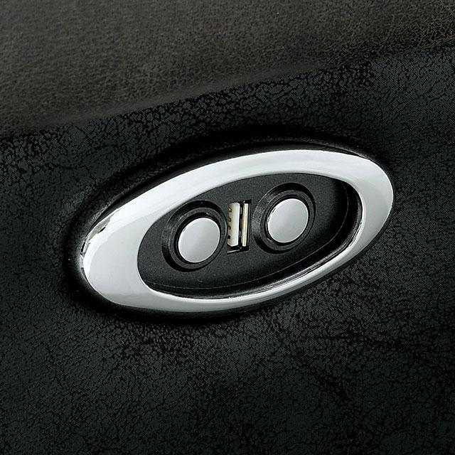 BROOKDALE Power Motion Loveseat, 81 1/4"L X 39"W X 39 1/2"H, RECLINED: 81 1/4"L X 65 3/4"W X 31 1/8"H (SEAT HT: 19", SEAT DP: 21 1/2"), 208.78lbs. This loveseat is draped in soft Fabric-like Vinyl coming in a unique gray and black combo. Cushions and armrests are plush, while the center console features stainless steel cup holders