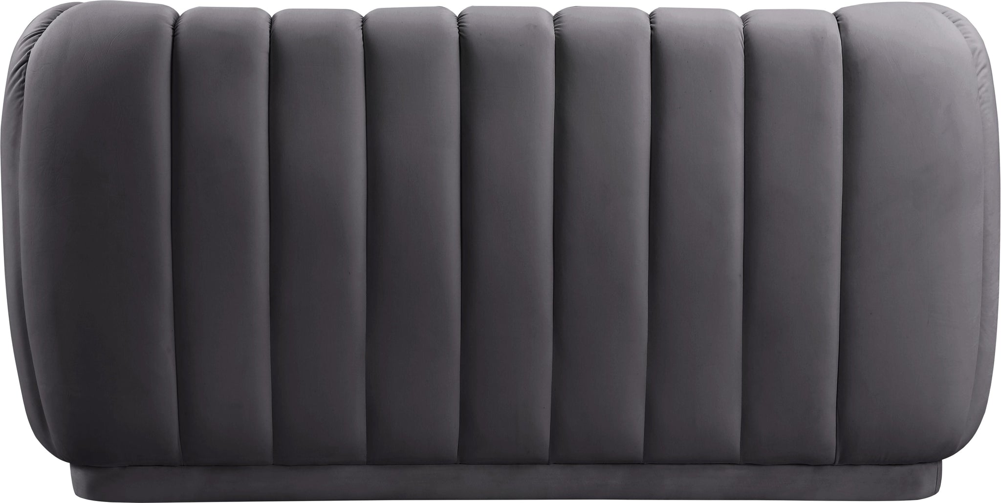 Casual meets elegant in the design of this Dixie velvet love seat. Relax, unwind, and take a load off whileyou'rere kicked back in this handsome seating option. Deep channel tufting adds an upscale touch to the unit���s soft grey velvet upholstery while giving it a dimensional look. Pair this piece with other items in the Dixie collection for a complete and seamless look in the living room or den.