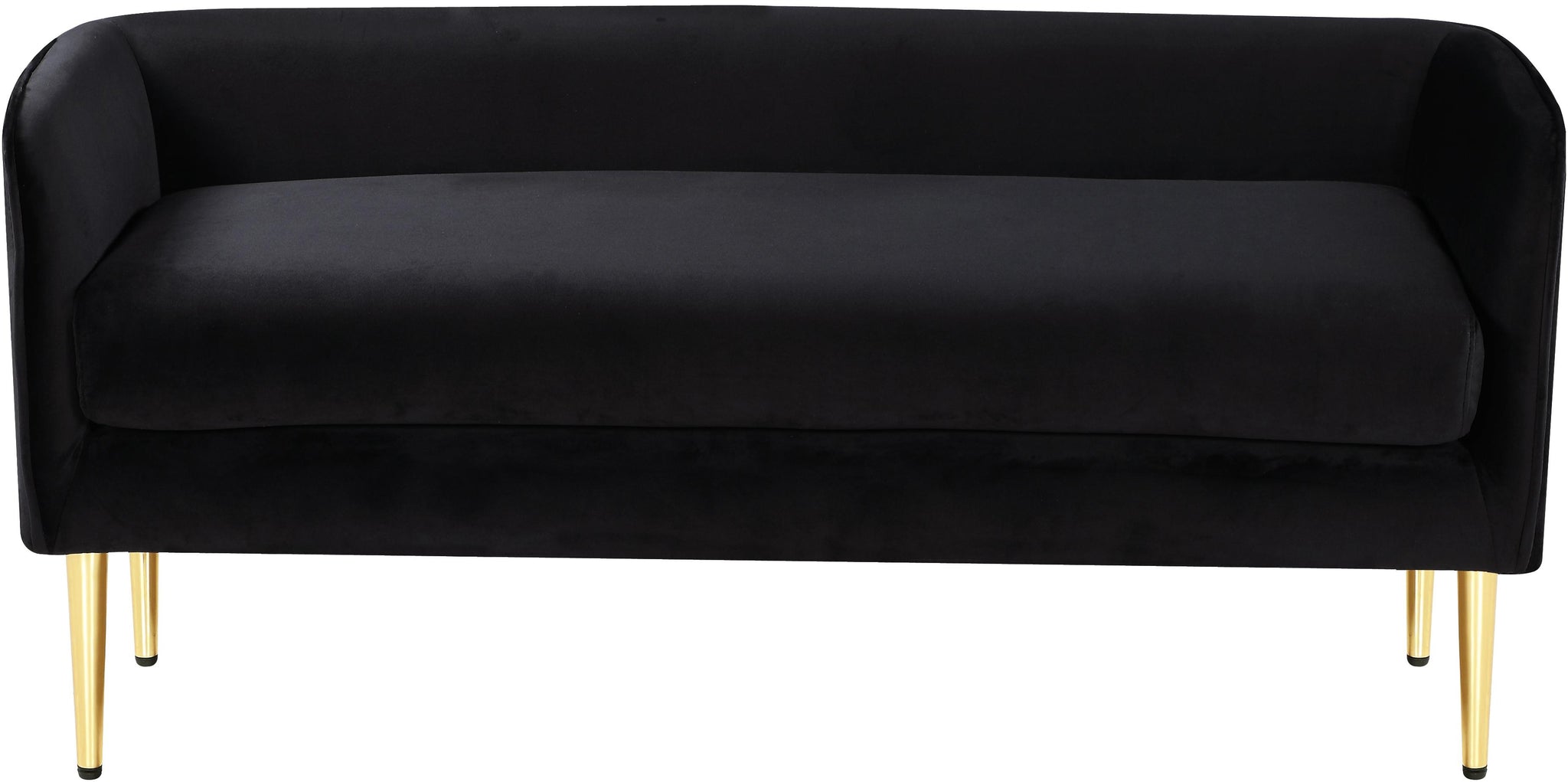 Sit or recline in exquisite comfort on this Audrey bench from Meridian Furniture. The black velvet is smooth and soothing to touch, perfect for relaxing after a long day of activities. Underneath the bench are four golden legs for sturdy support with caps on each leg to protect your floors. The contemporary design suits modern households while the 20-pound weight makes it easy to move around as needed. Sit the bench in the living room for extra seating or by the front door for putting on shoes.