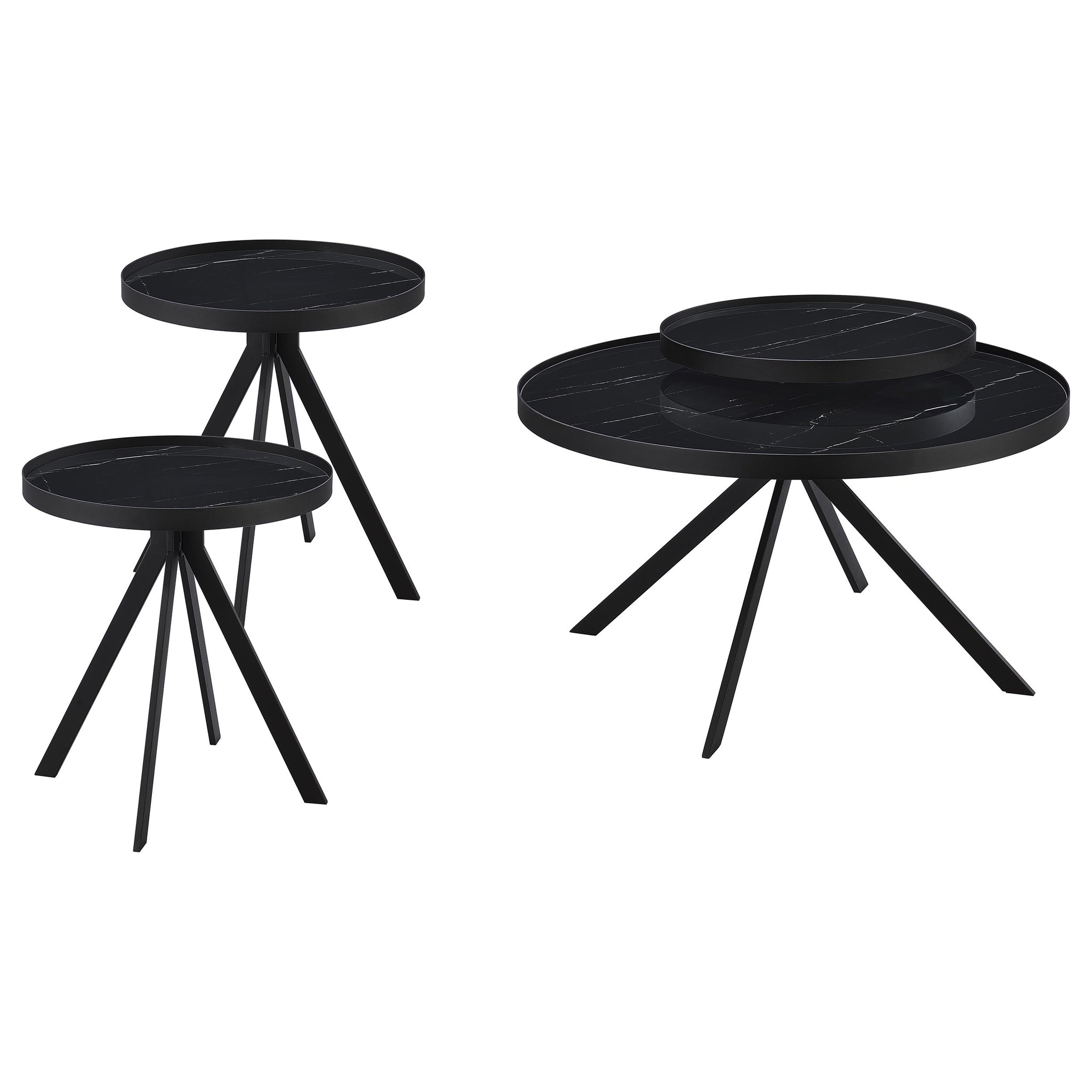 This modern coffee table set combines style and durability with tempered glass surfaces featuring a sophisticated marble-patterned print. The sleek metal frames provide stability, while the multi-tier design enhances functionality for storage or display. Perfect for contemporary living spaces, this occasional set blend seamlessly with modern decor, offering an elegant and practical solution for everyday use. Their lightweight yet sturdy construction ensures easy repositioning and long-lasting durability. Key Features: • Coffee table set with tempered glass tops adds a sleek and modern touch to any living space • Elegant marble-patterned print enhances the sophisticated and stylish aesthetic of the design • Sturdy white metal frames provide lasting durability and reliable support for everyday functionality • Multi-tier layout offers additional space for storage, display, or decorative arrangements • Lightweight yet stable construction allows for effortless repositioning and versatility • Smooth tempered glass surfaces ensure easy cleaning and long-term resistance to wear