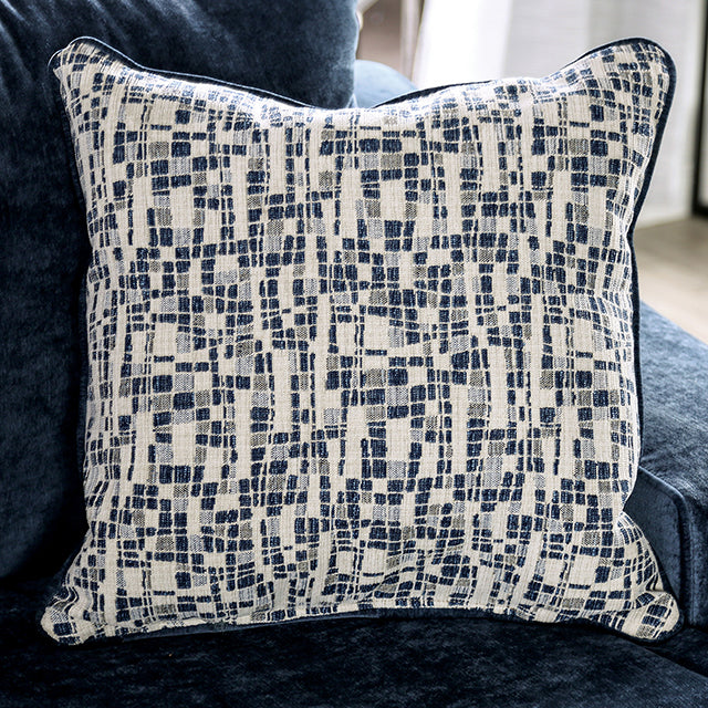 For those looking to balance a minimalist room with a visually hefty piece, this sectional is the perfect choice. The navy chenille is the star of the show--bold yet inviting, the soft fabric uncannily reminds you of the depths of the oceans. Along with contrasting ivory accents, it may also conjure the image of a vast sky in the darkest of nights. The oversized stature of the frame, with wide, low profile arms and loose pillow backs, helps invoke a sense of immense freedom. It's the kind of furniture that fills in the space it is set on, designed to take any home decor up a notch.