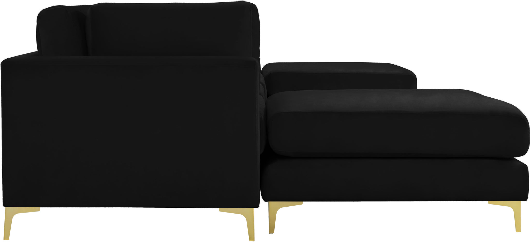 Ready to get cozy? Curl up from the welcoming confines of this Julia velvet modular sectional and you can do just that! Its soft black velvet upholstery is soft and supple to the skin, coaxing you to relax, unwind, and sit for a spell. It comes with both gold and chrome legs for a customizable and contemporary finish. Pair this Julia piece with others to form an infinite number of seating configurations to meet your particular decorative desires and space requirements.