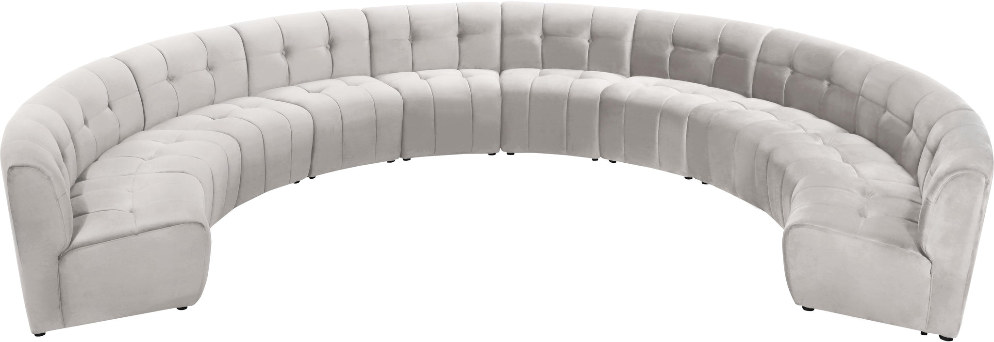 Invest in your home's comfort with this Limitless 10 Piece Sectional. This modular unit offers tons of flexibility in the number of ways that you can put each piece in the Limitless collection together to get the ideal customized look. Upholstered in cream velvet, this beautiful piece is soft and cool to the touch, so you can feel comfortable from every angle. Button and channel tufting add to this unit���s upscale look and contemporary charm.