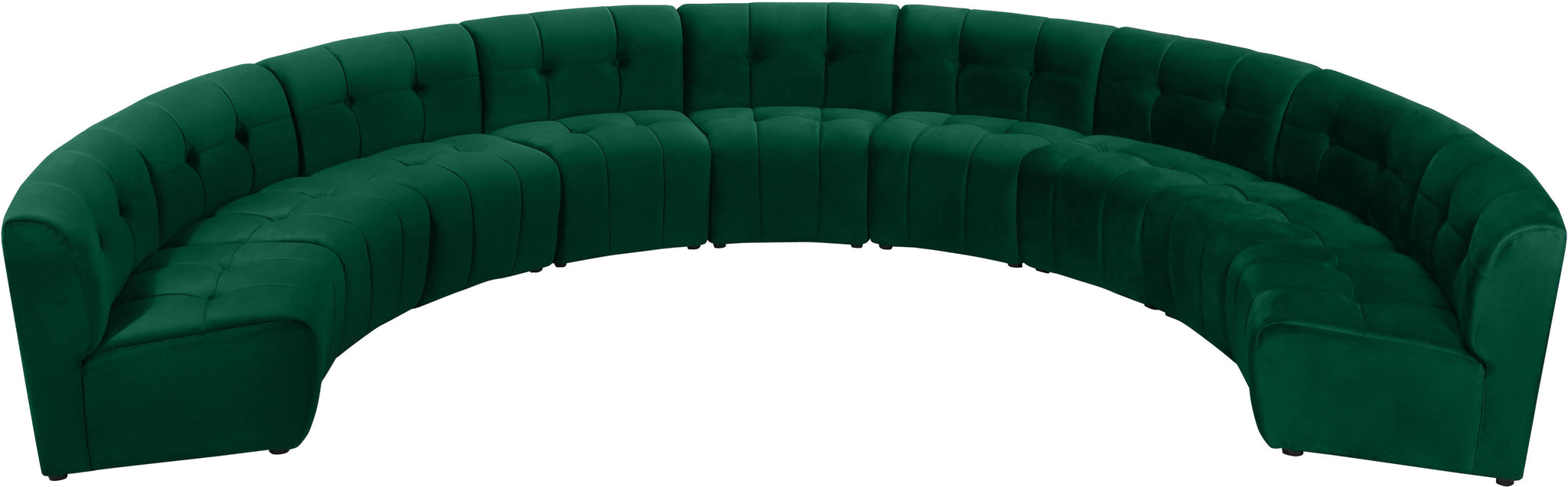 Invest in your home's comfort with this Limitless 9 Piece Sectional. This modular unit offers tons of flexibility in the number of ways that you can put each piece in the Limitless collection together to get the ideal customized look. Upholstered in green velvet, this beautiful piece is soft and cool to the touch, so you can feel comfortable from every angle. Button and channel tufting add to this unit���s upscale look and contemporary charm.