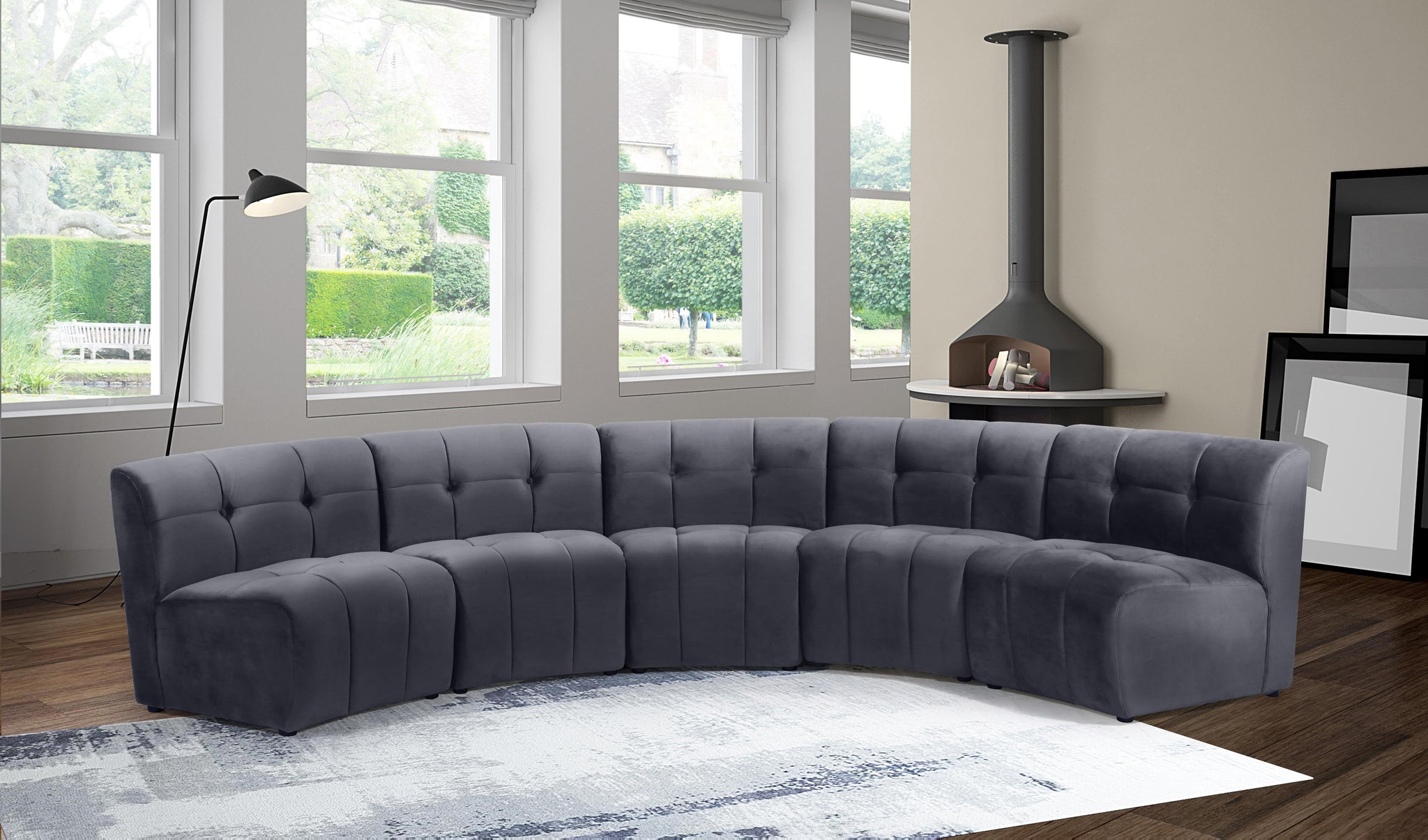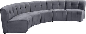 Invest in your home's comfort with this Limitless 5 Piece Sectional. This modular unit offers tons of flexibility in the number of ways that you can put each piece in the Limitless collection together to get the ideal customized look. Upholstered in grey velvet, this beautiful piece is soft and cool to the touch, so you can feel comfortable from every angle. Button and channel tufting add to this unit���s upscale look and contemporary charm.