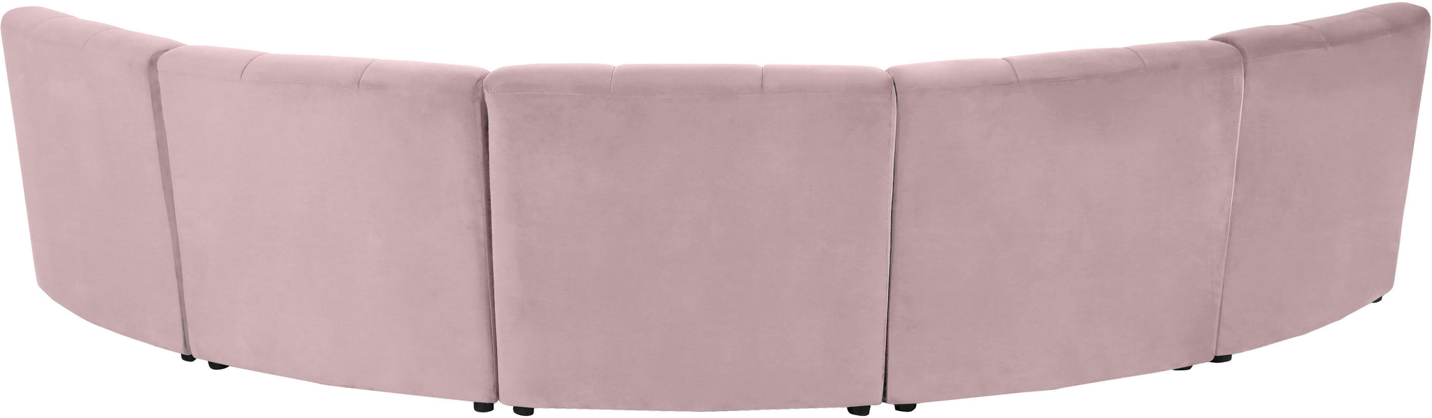 Invest in your home's comfort with this Limitless 5 Piece Sectional. This modular unit offers tons of flexibility in the number of ways that you can put each piece in the Limitless collection together to get the ideal customized look. Upholstered in pink velvet, this beautiful piece is soft and cool to the touch, so you can feel comfortable from every angle. Button and channel tufting add to this unit���s upscale look and contemporary charm.