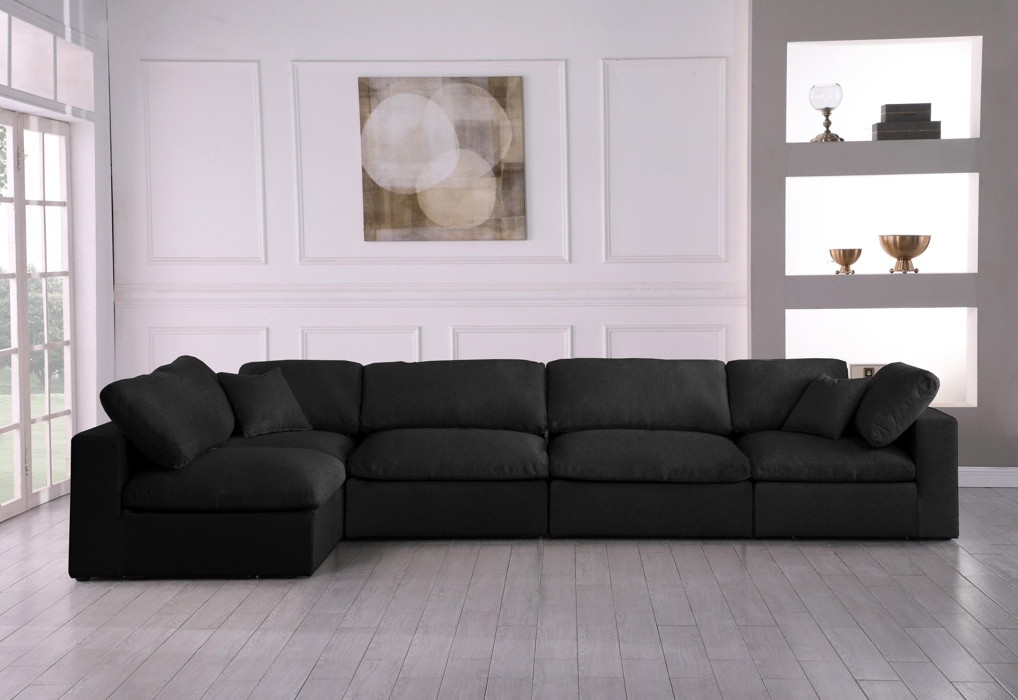 Serene Black Linen Fabric Deluxe Cloud Modular Sectional