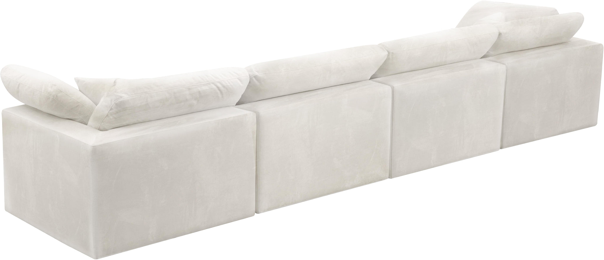 Bring home this Cozy sofa for a fresh new look. Embrace casual elegance with this Cozy velvet cloud modular down-filled seating option. Handsome from all angles, this piece features soft cream velvet upholstery to make it an easy fit in any room. This modular piece can be combined with other items in the Cozy collection to create a seating group of your dreams. The cushions on this piece are exceptionally comfortable���and filled with down for luxury that you deserve as you rest and relax.