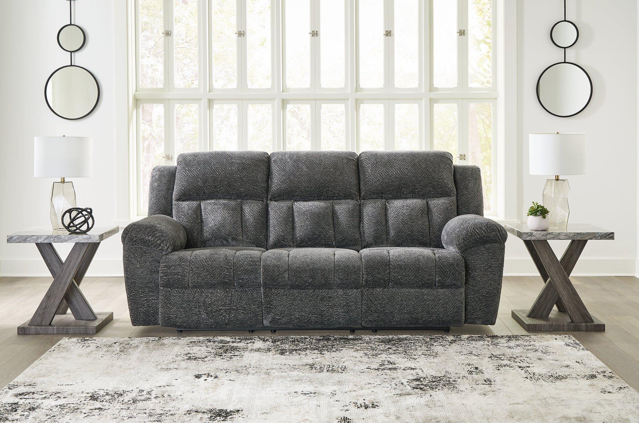 With its large-scale design, this extra-spacious reclining sofa is a masterclass in accessible style. Plush, ultra-soft upholstery keeps everyone cozy as you lounge with family or guests. In a neutral hue, it seamlessly suits different aesthetics as your taste changes. Time to relax? The sofa's pull tab reclining allows you to mellow out with ease.