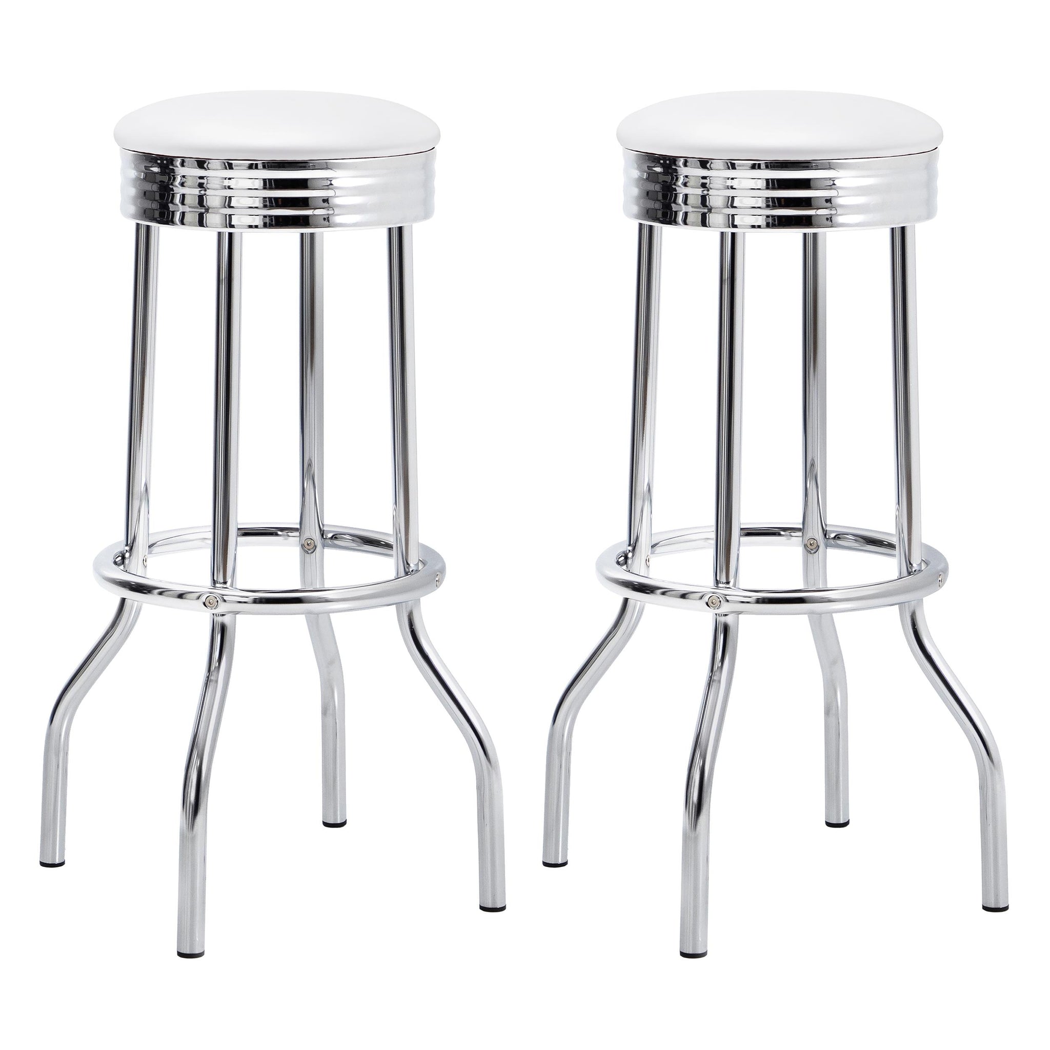 Bring retro charm to your home bar or kitchen with this swivel bar stool, featuring a ribbed chrome base and cushioned white leatherette seat. A nod to classic diner design, it combines nostalgic flair with modern comfort and durability.