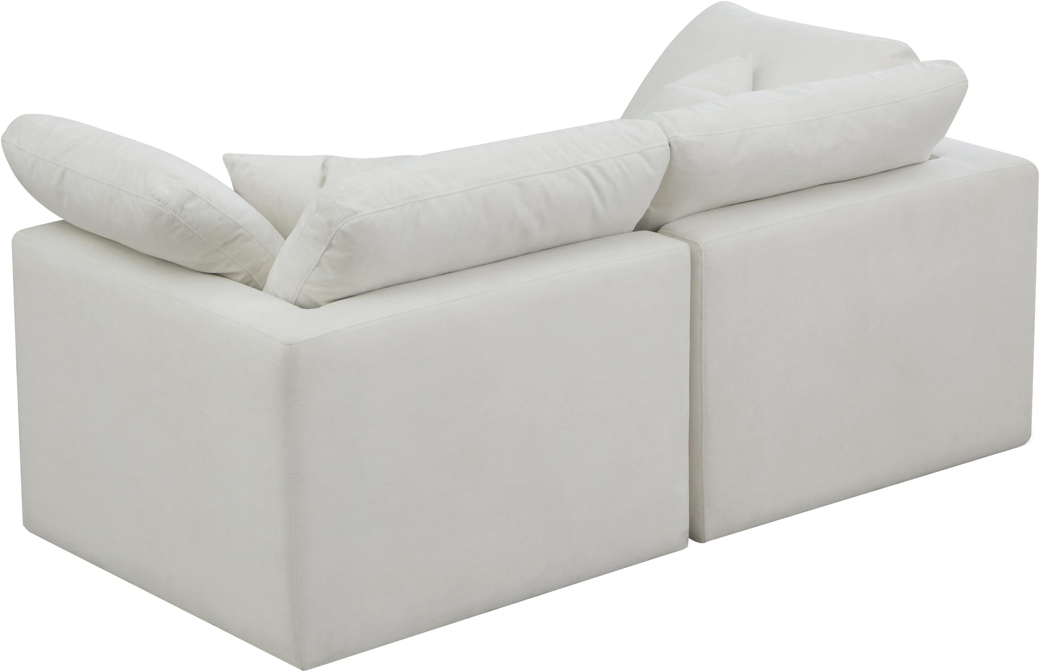No matter how big or little the size of your gang, they can all find their sweet spot when you choose pieces from the Plush collection to build your ideal seating group. Choose this individual Plush piece or pair multiple pieces together to get the custom look everyone will love. The soft cream velvet material is soft and welcoming to the touch, and the set���s cushions are overstuffed with a down and feather blend to provide ample support for tired bodies.